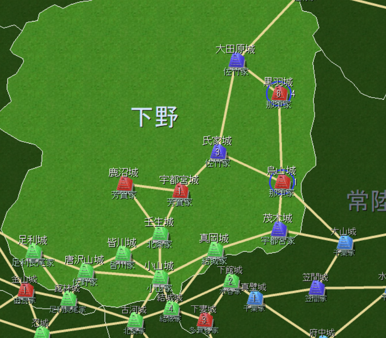 - 里見と対峙。佐竹も南北が割れてるうちに、小田も余裕があれば狙いたい。