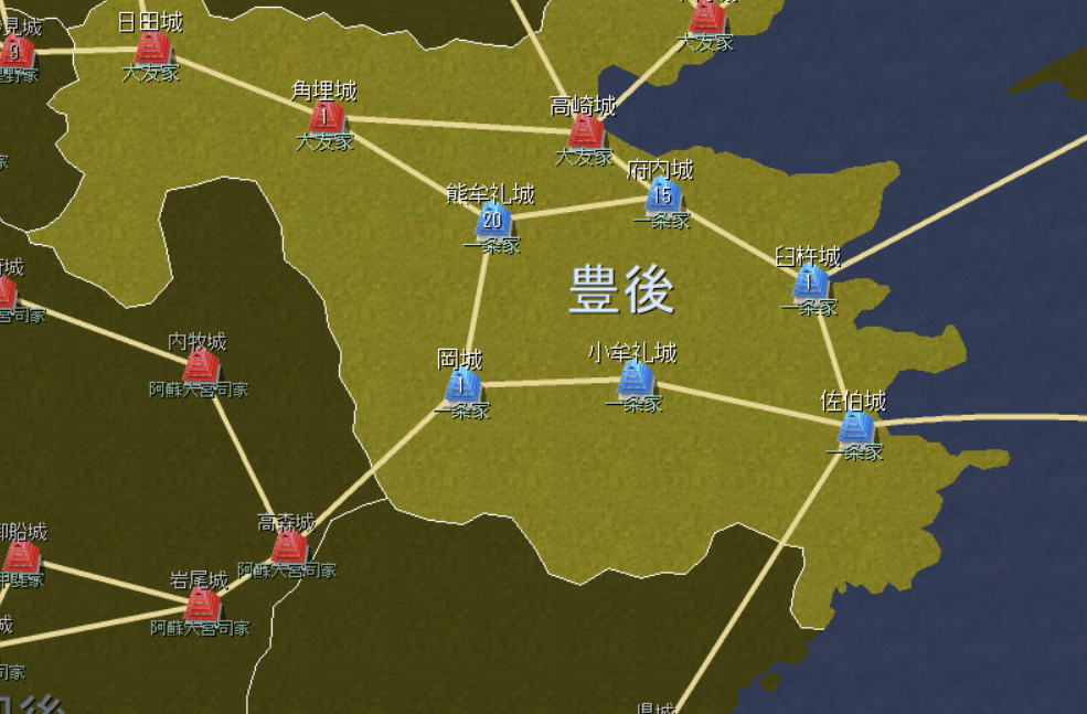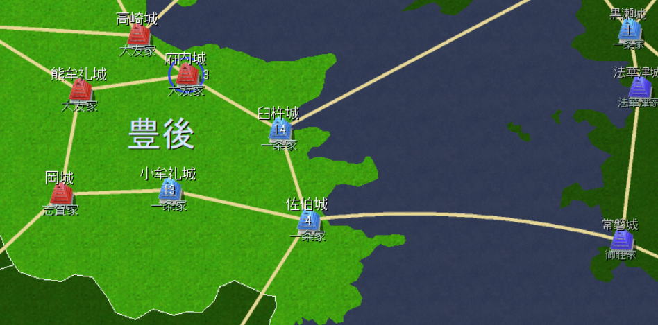豊後の南半分を切り取ることに成功。