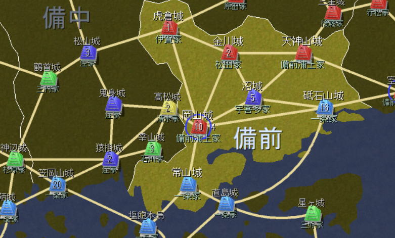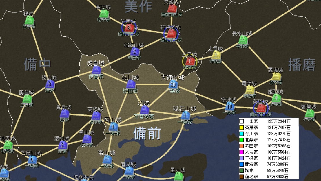 岡山城は包囲でいくらか削れる。