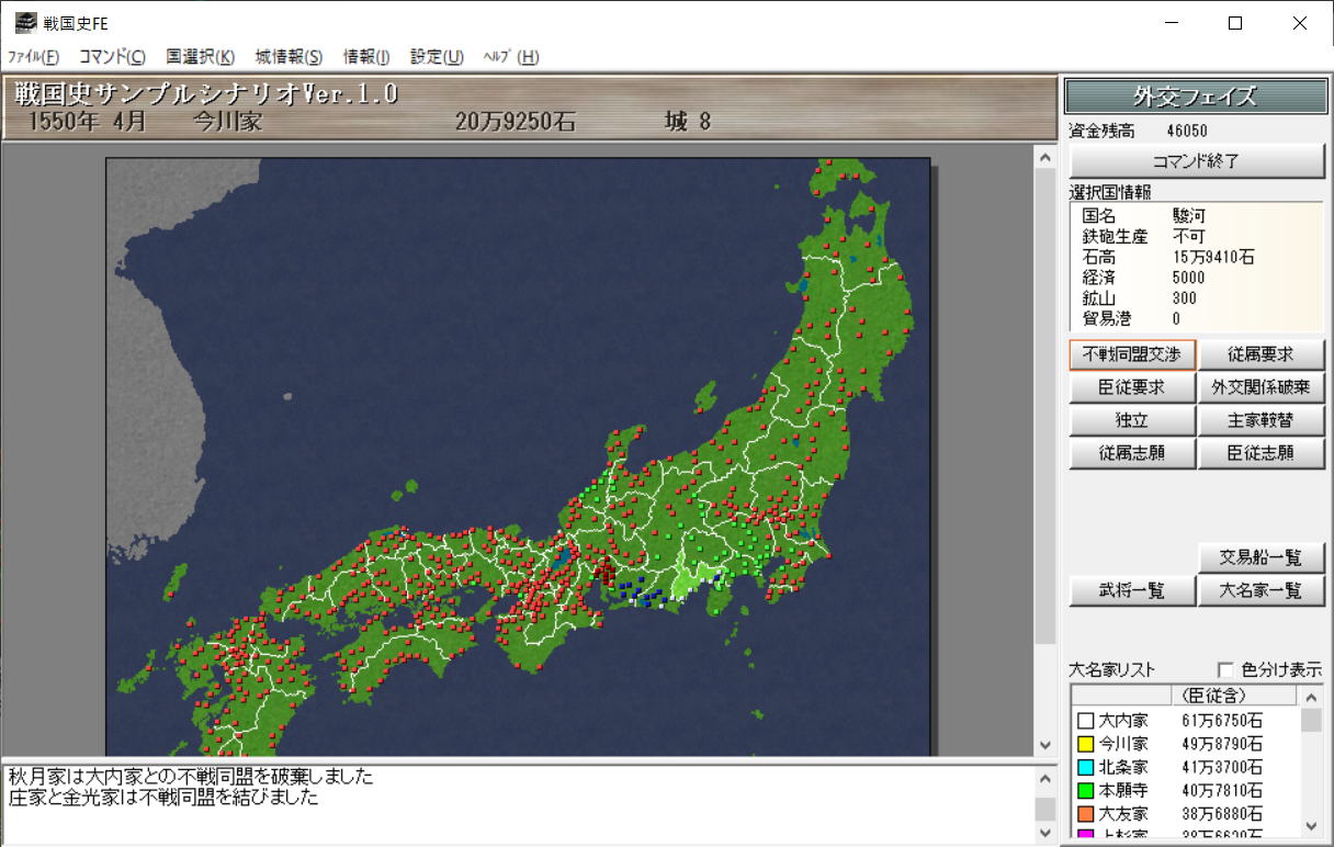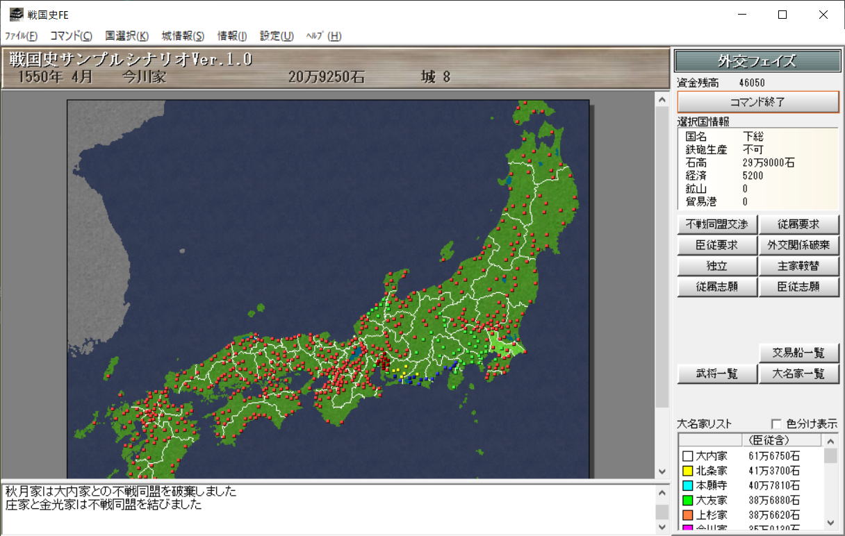 北条家とは初期で敵対状態だが、宿敵と隣接しているので早々に同盟は結べそうだ。