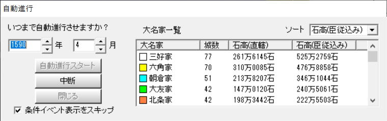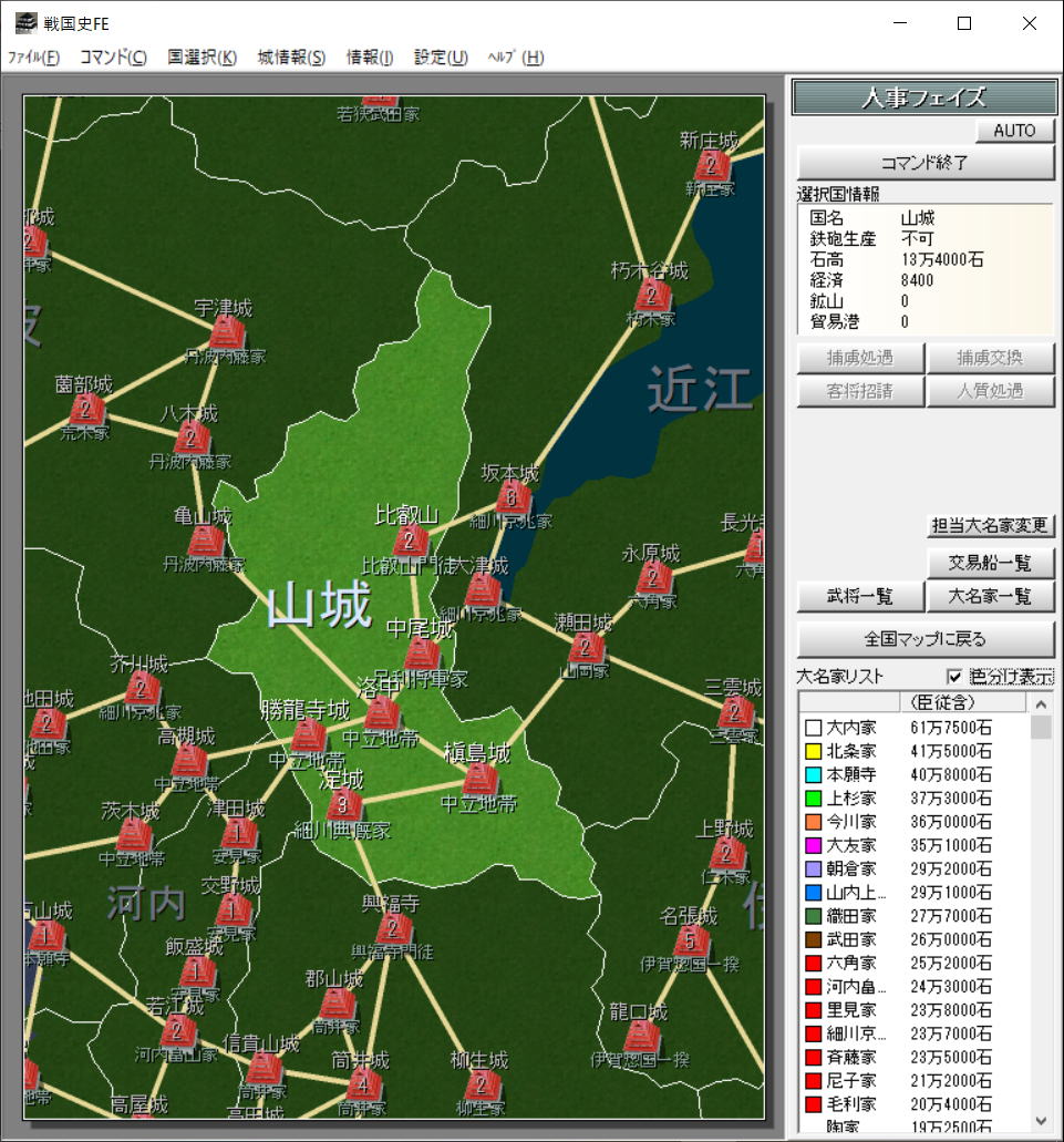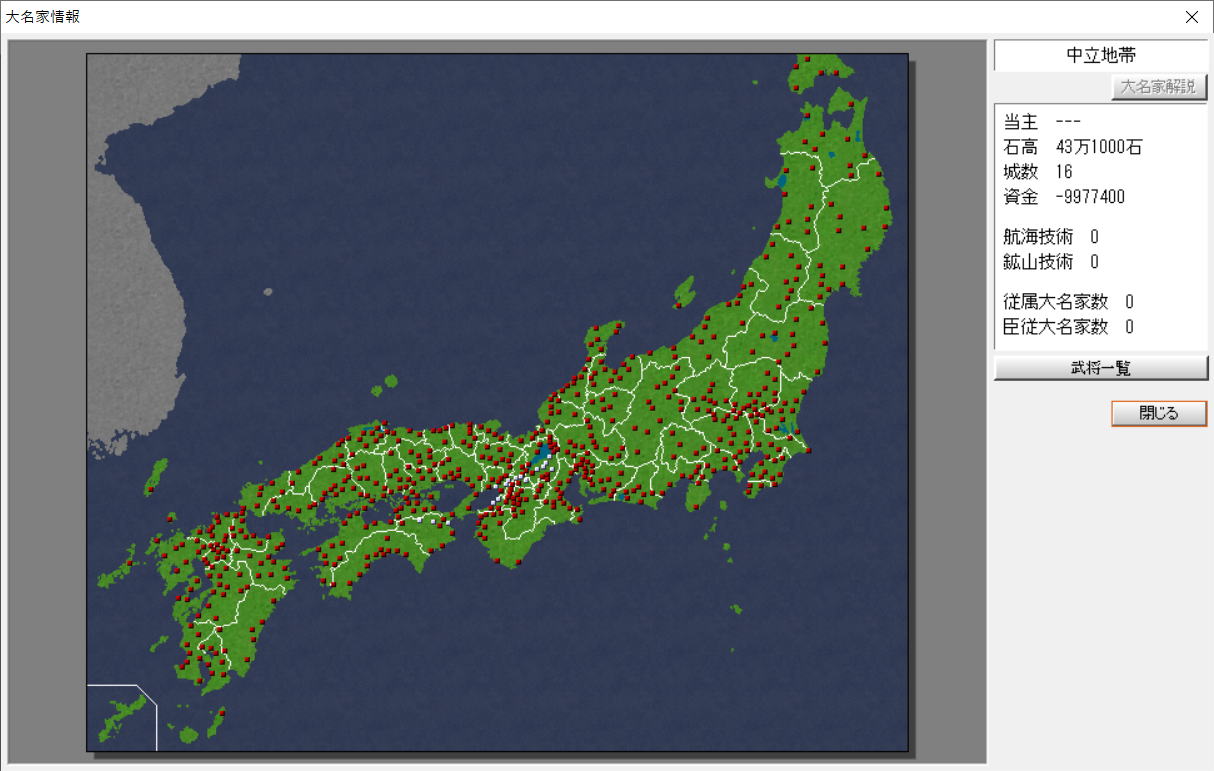 そして、勝ち抜けしていった大名家の場所は「中立地帯」扱いとし、初手で全宿敵の「中立地帯」に吸収される形とする。そして臣従国は解放される。
