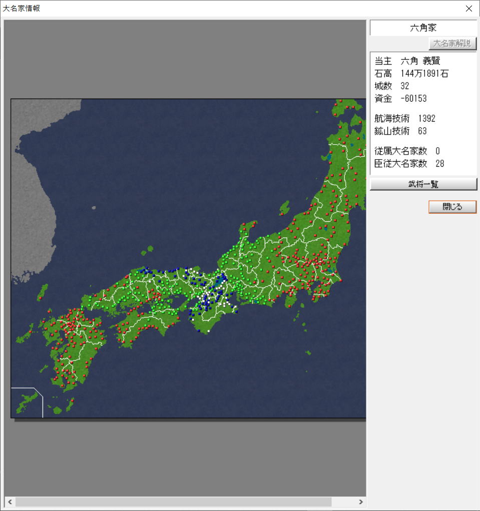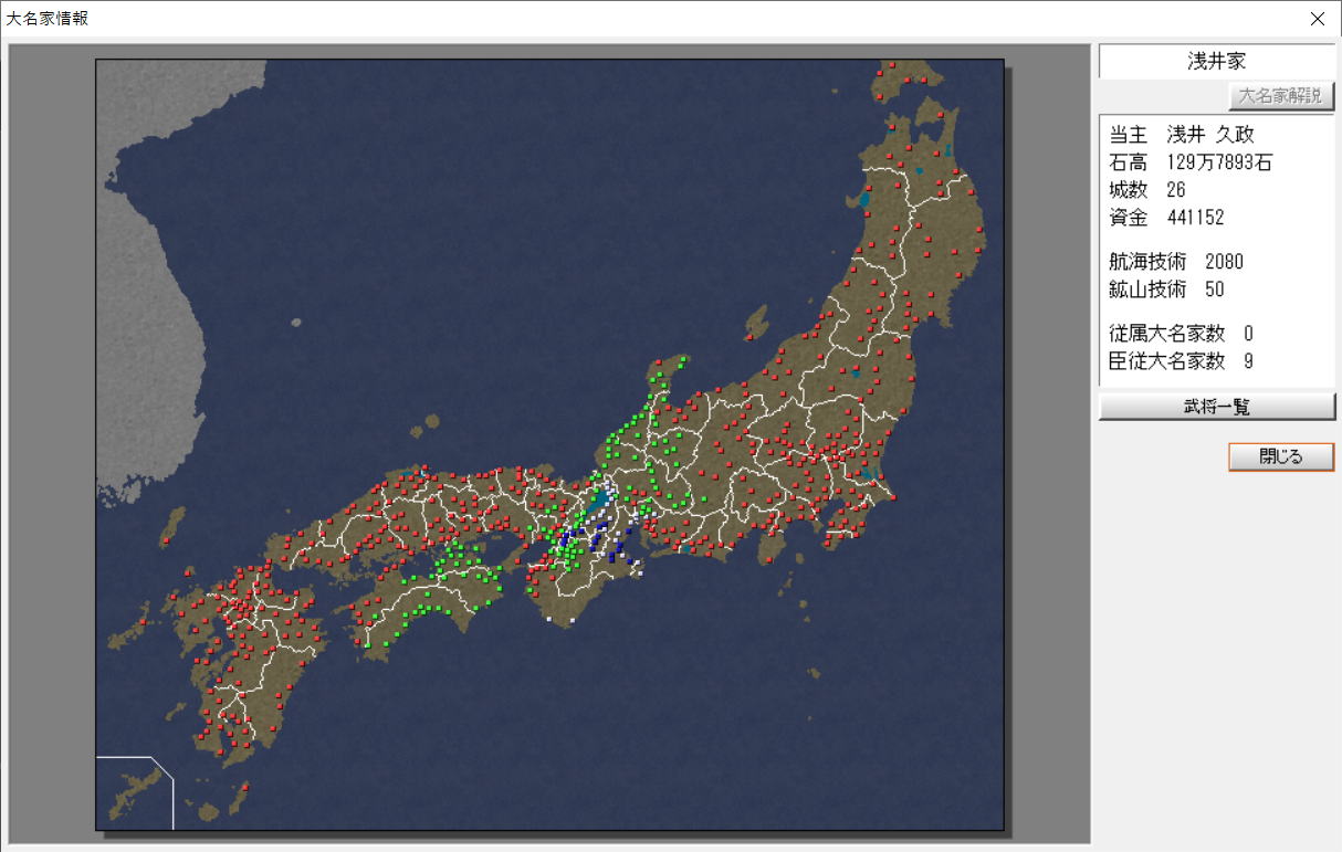 公平性のため、武将が1人しかいない大名家には、郎党相当のALL1武将を配置しておいた。これにより下蒲池家など初手で動かない大名家が動くようになるはず。