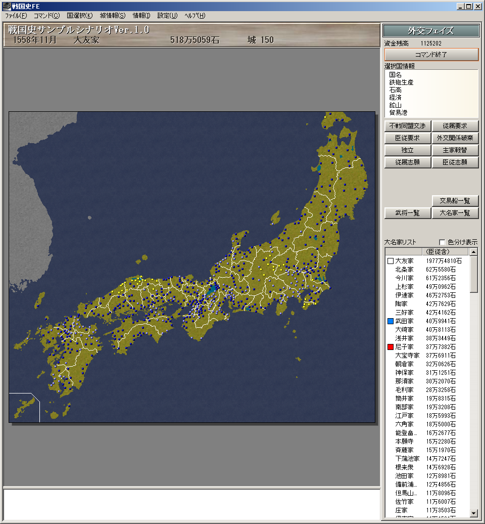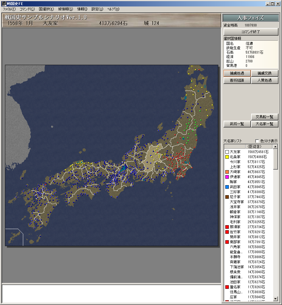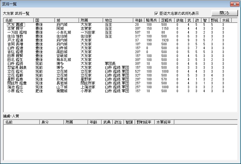 直轄が19万500石、臣従大名含めると35万1000石となっている。臣従大名を含めた順位は6位。1位の大内家が真上にいるが、イベントですぐに崩壊するので問題ない。