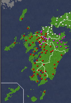 意外に統一で残りがちな肥前の島嶼部。城も頑丈で落としにくい。