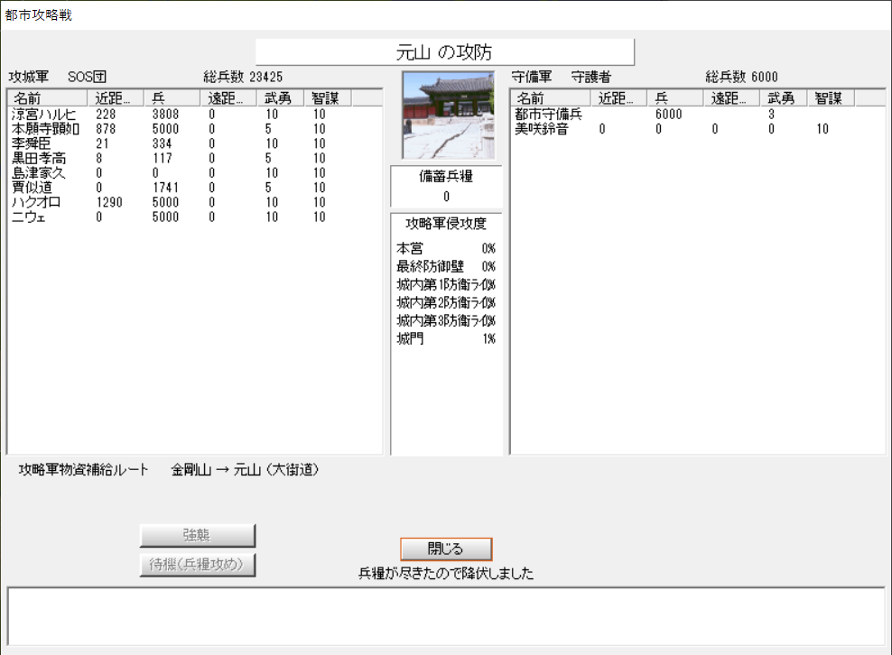 ちなみに守護者、守備兵は毎ターン補充される。しかし、季節イベントでの兵糧消滅には抗えず、あえなく落城。