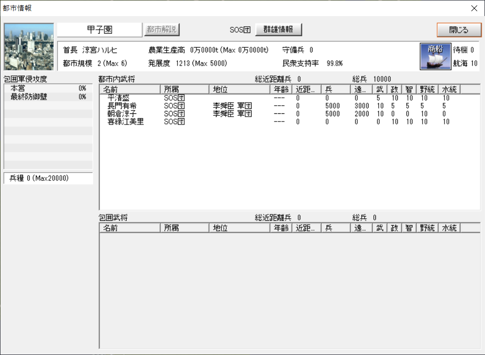 - 武将0の都市ができると敵対軍団が湧くことがある。
