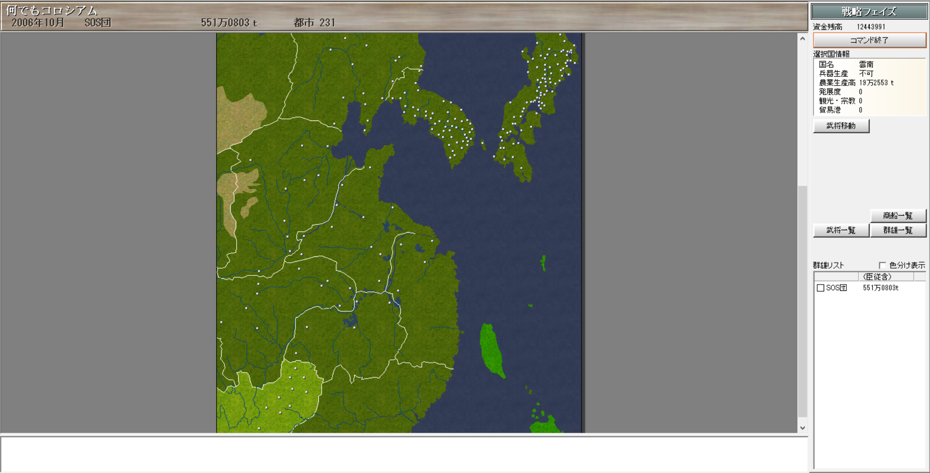 2003年1月、黄巾・大友家が滅亡。 日本の残りは軍団に任せて朝鮮へ進出。まずは湧き出た南宋から。