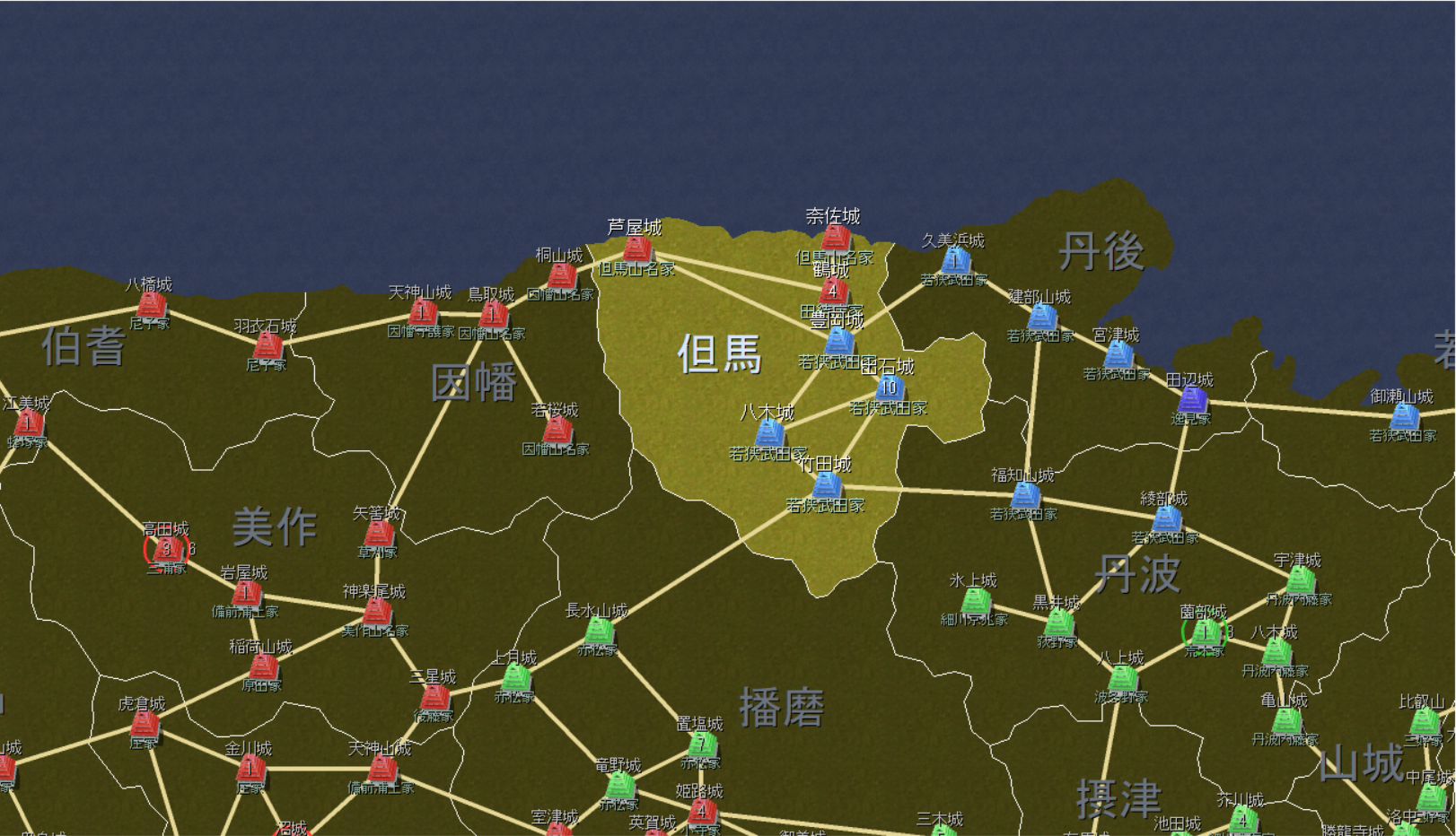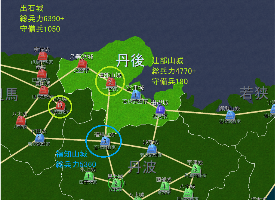 それでも9月の時点で若狭武田5500vs但馬山名8000と、まだ但馬山名のほうが多いのだが。