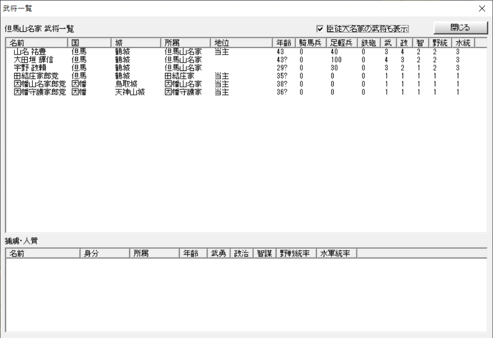包囲でほとんどの武将を失った但馬山名。臣従大名家は郎党が当主に。