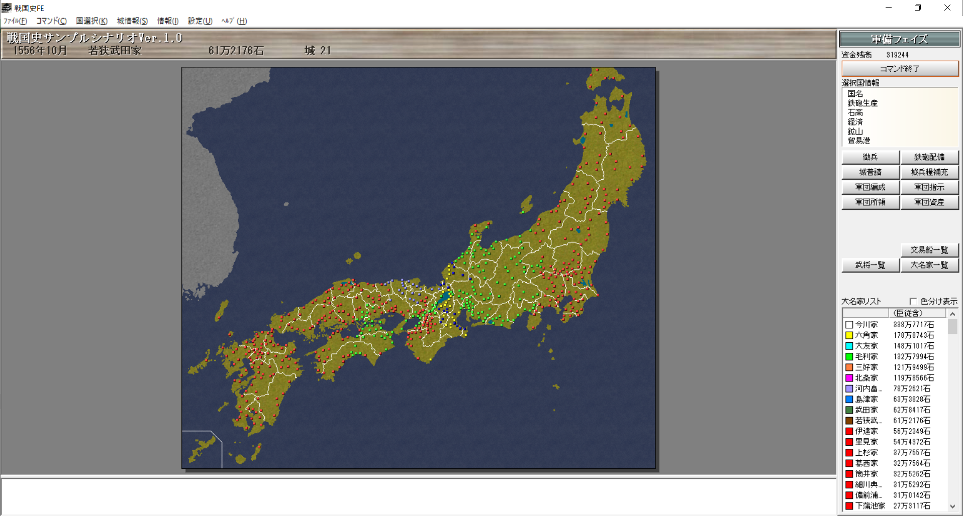 1550年4月の国力は直轄3万石、臣従含めて6万石。これでも上位20%に入る。